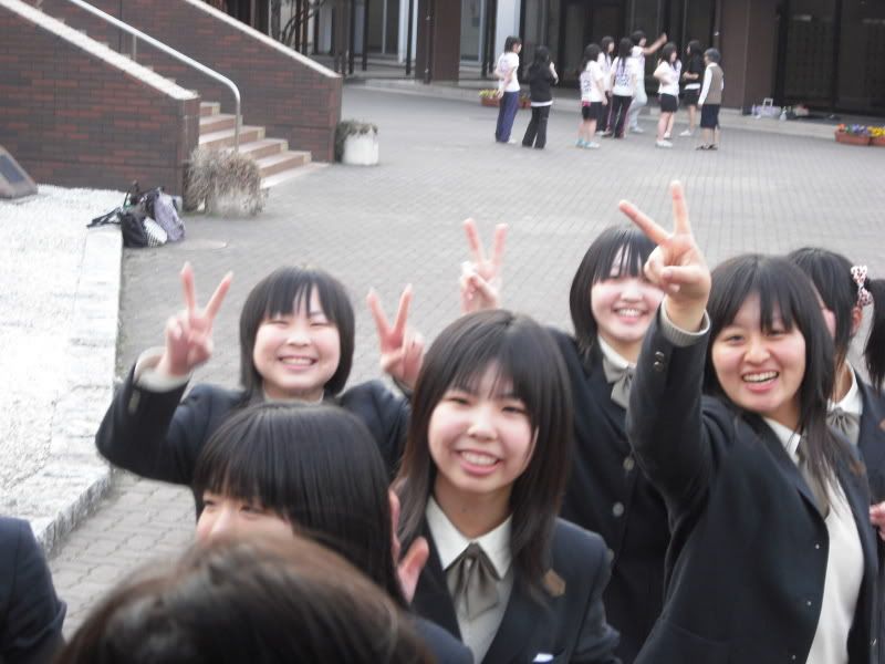 So anyway, at Tsuchiura we were experiencing things with the exchange students. They were moving all over Japan to see things and experience things and Tsuchiura was one stop. So, we made mochi, pottery, and soba with them. Then we had like 2-3 days of Rotary related meetings. I had to give 2 speeches. I love how I'm told to do speeches like 30 minutes before giving them. I was sitting in my seat scribbling down words before hand. A really smart school came those days. Well, a few people. They're part of a club and because of that club they do all these random things. I made some friends there and then we were told that for one day we'd be going to their school. I was really excited. So, our last day with this Rotary thing we went to Nihon something something High School. I got to see them again and right now it's pretty clear to them that I'm obsessed with the guys haha. Even my friends here in Hitachi have that engraved in their minds. Every time a group of guys go pass they turn to me asking if there were any good looking ones. At the school we did Shoudou (Calligraphy), and participated in Juudou and Kendou. Juudou is actually A LOT of fun. I was throwing this girl on her back haha. She was jumping up though so she would flip. But if I was that strong to flip her, that would just be so freaking cool. I thought I would have enjoyed kendou better since it's like using a sword and stuff but juudou was just too much fun. I met a girl who like Visual Kei and recently we've been emailing each other. If there's a band that will be performing around us, we're gunna try to go. Leaving them was pretty sad. Even only knowing them for that day we got really close, I was talking with them all day. And I didn't want to leave. I wanted to come back the next day to see them. This was the last picture of them.
