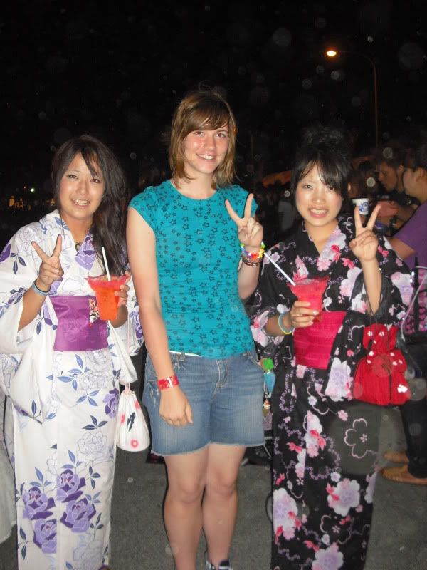 I wanted to buy a Yatterman mask but the lady said 1,000 yen. WHAT?! Expensiveeee~ And I saw 4 other friends of mine♥ 2 of them wore yukatas and they both were reallyyyy pretty. I was like wow, couldn't believe I knew them. Actually, pretty much everyone who wore a yukata was amazingly pretty. And today I realized how many Japanese people dye their hair. It's crazy.